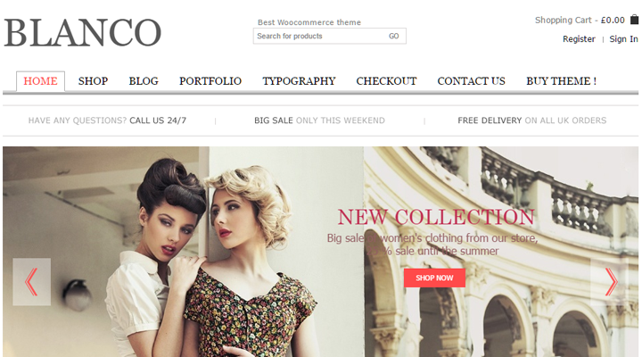 Blanco è un bel tema e-commerce WordPress che dispone di un design responsive, con variazioni di colore illimitate, font di Google, e molto altro.