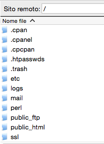 A seconda della configurazione, potrebbe essere necessario navigare nel file system per trovare la cosiddetta root del sito, cioè la cartella che contiene i file a partire dall’indirizzo base miosito.it/.